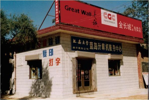 1994年8月,藍(lán)島計算機服務(wù)中心于延安市楊家?guī)X成立。主營計算機培訓(xùn),金長城電腦銷售。